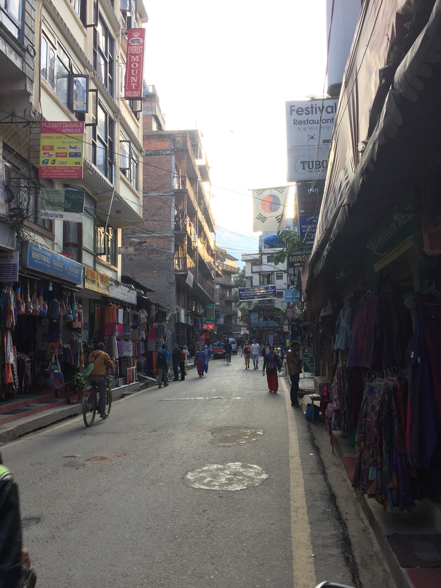 Thamel, the tourist district. The shops have everything you could need for touring and trekking, plus souveniers