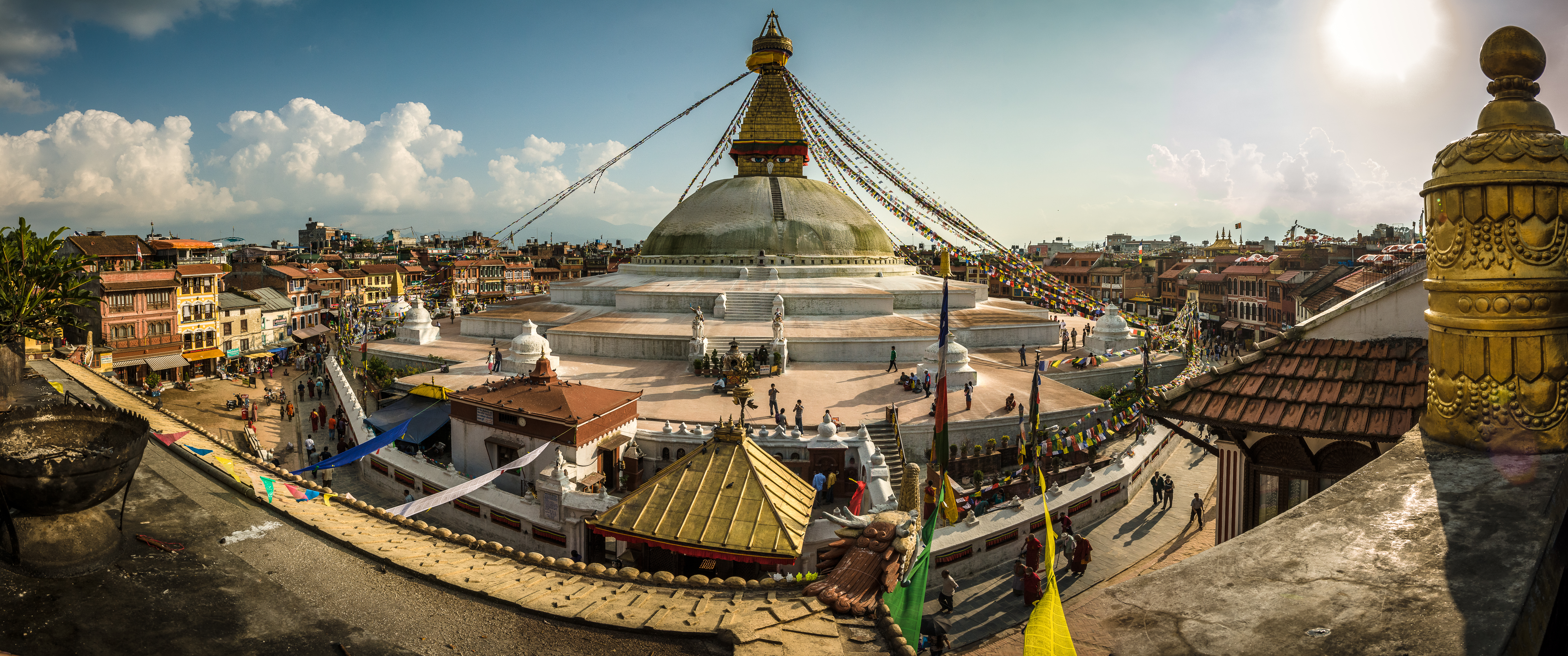 We then stopped by the Boudhanath Stupa (temple), a large structure surrounded by a plaza of shops. The temple was half-destroyed during the earthquake in April 2015.