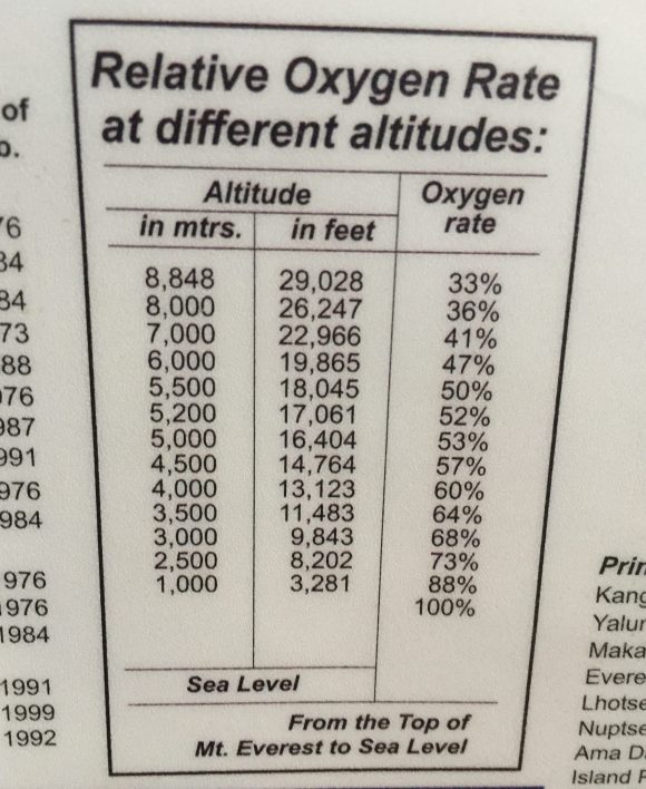 Good info to know? Maybe not. Two Swedish medical students were in Namche recruiting trekkers to participate in their study on altitude sickness. They had you fill out a questionaire and tested your oxygenation rate with a portable pulse ox reader. Trekkers took a sheet to fill out each night with location, altitude and any symptoms, and were supposed to scan and email it back to them.