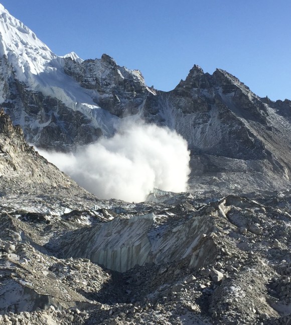 Throughout the trek we observed a few small avalanches, which are preceded by a sharp cracking sound. This one happened nearby during our visit to Base Camp. Like everything else, this small event was a reminder of the forces of nature that rule the area.